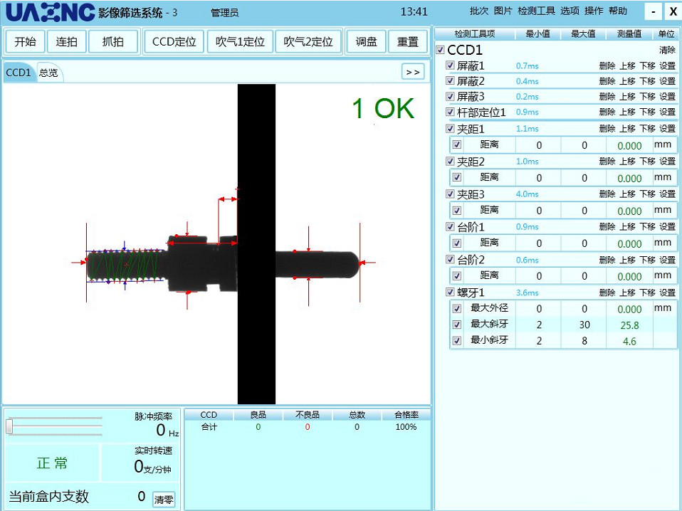 CCD1:對產品各臺階尺寸和螺牙底中外徑尺寸進行檢測,同時可以檢測尾桿變形。